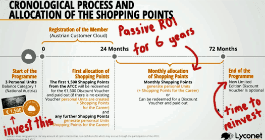Regular purchases in the myWorld shopping community generate Shopping Points but cannot be allocated to customers who have not come across myWorld by “recommendation” and therefore do not have an account. For this reason, Shopping Points generated this way, are allegedly pooled in a cloud, to later be distributed proportionately to the investors.