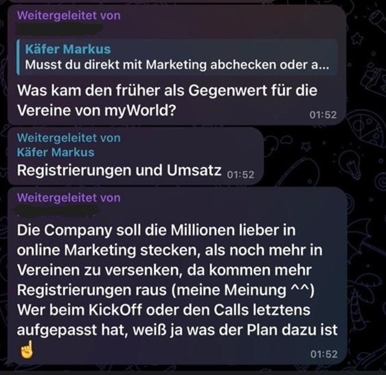 Markus Käfer explained in a chat group that the sponsorship of sports clubs was used exclusively to obtain the addresses of the clubs’ members and fans in order to lure them into the Ponzi scheme with the idea of cashback. One marketer rightly remarked that Lyconet had money for sponsorships but had not managed to build up a dealer network in 20 years. Käfer now presents himself as a stock market expert on the worthless eCredits and talks about the even more worthless Blocktrade platforms as if they were the Holy Grail. His special skill, however, seems to be kicking marketers out of groups who simply want answers after years of deception.